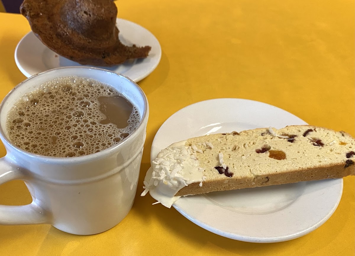 Regulars often stop by for the fresh, straightforward coffee that's well-suited to those looking for a reliable pick-me-up, whether they’re running errands or waiting through appointments nearby. The café also draws in people who appreciate baked goods with a stronger personality—their biscotti selection, especially the "Mowie Wowie" variety, frequently garners enthusiastic nods from those who savor a more distinctive cookie experience alongside their espresso or Americano.